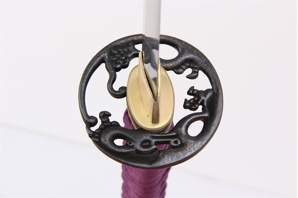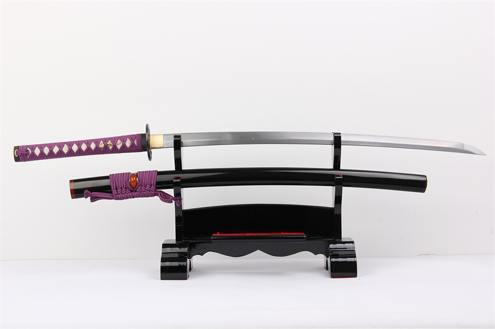 鞘材:實木黑色亮光漆三個牛角 繞紫色真絲帶