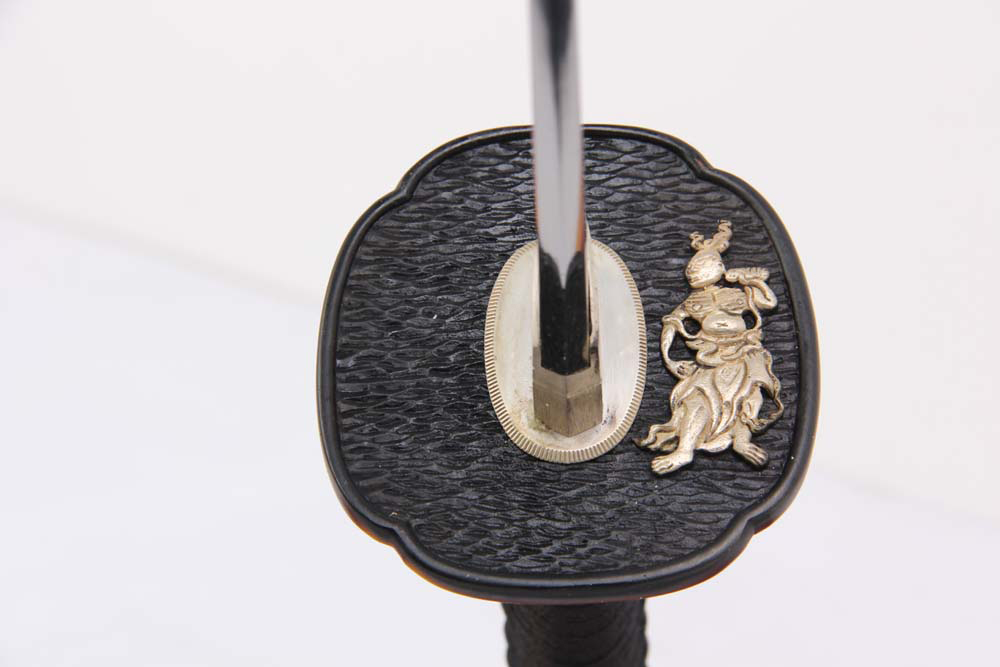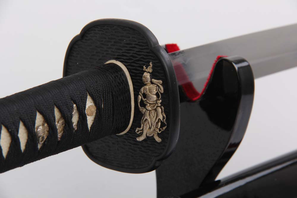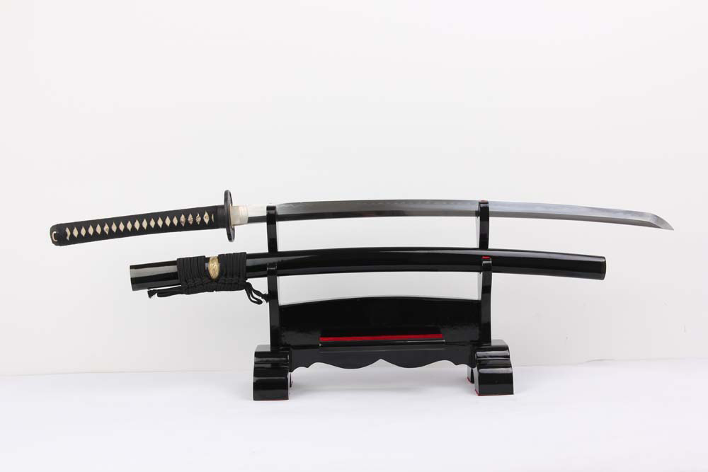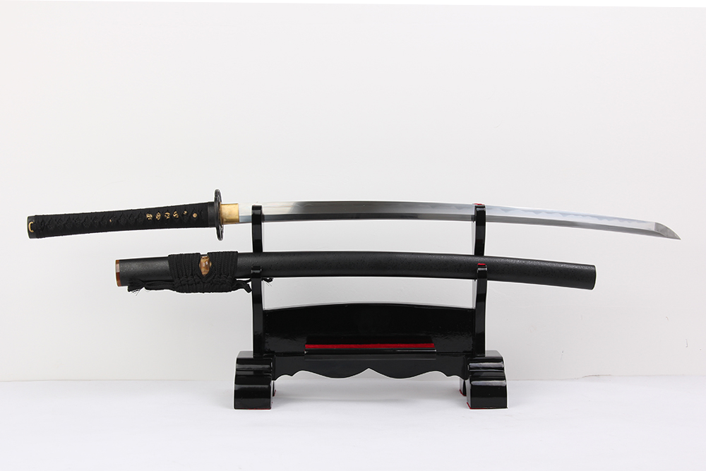 鞘材:實(shí)木黑亮光漆三個(gè)黃牛角 繞黑色真絲帶