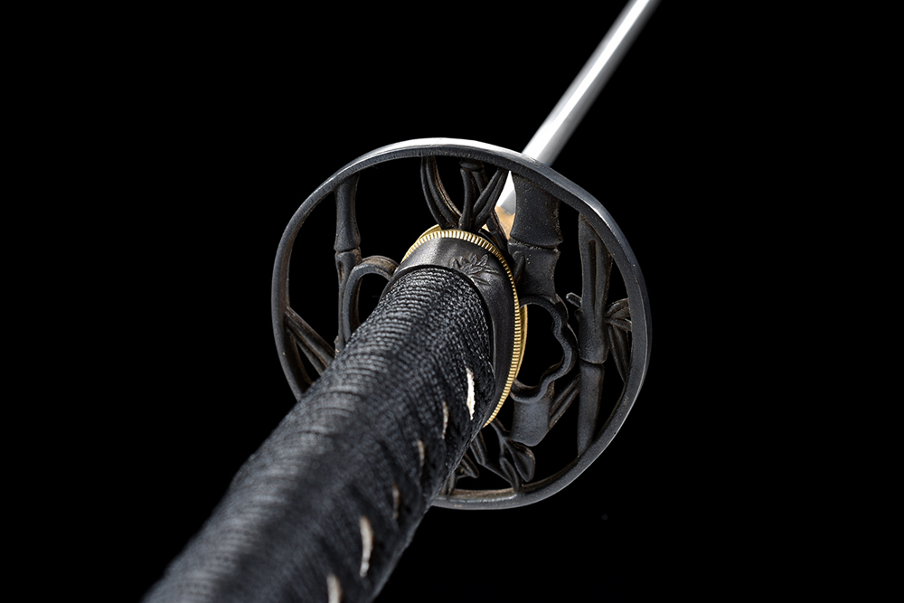 28寸高檔手工刀全長(zhǎng):104cm 刃長(zhǎng):68cm 柄長(zhǎng):28cm刃材:1095燒刃 無(wú)槽高檔推磨三色快口刃紋要清晰 刃線到刀尖柄材:實(shí)木 繞黑色帶+真魚皮鞘材:實(shí)木酒紅漆鑲嵌貝殼荷葉鴛鴦圖三圈黑 繞黑色真絲帶配件:銅包裝:紅龍布木盒裝紅色菊花真絲刀袋