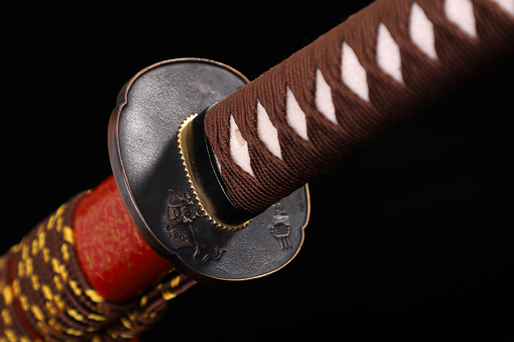 鞘材:實(shí)木紅底金粉三圈黑 繞咖啡間黃真絲帶