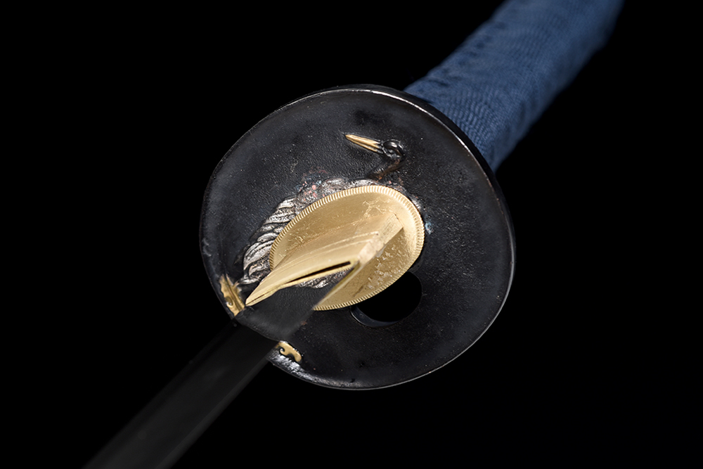 鞘材:實木亞光底藍(lán)點加金點三全黑 繞綠間藍(lán)真絲帶