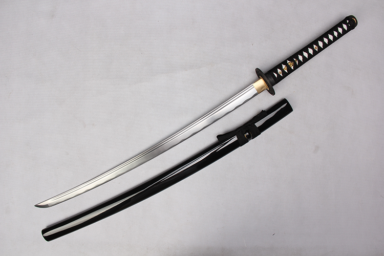 28寸手工刀全長(zhǎng):104cm 刃長(zhǎng):68cm 柄長(zhǎng):28cm刃材:1045鋼全槽有花口有切線柄材:實(shí)木 繞黑色帶+仿魚皮鞘材:實(shí)木黑亮光漆 繞黑色帶配件:銅+鋅合金包裝:黑彩盒 帶黑布袋