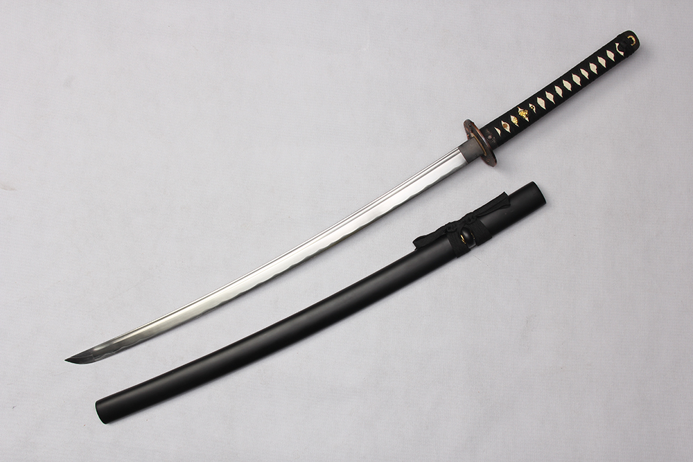28寸手工刀全長(zhǎng):104cm 刃長(zhǎng):68cm 柄長(zhǎng):28cm刃材:1045鋼有槽有花口柄材:實(shí)木 繞黑色帶+仿魚皮鞘材:實(shí)木啞光黑 繞黑色帶配件:鋅合金包裝:雙瓦紙盒 帶黑布背帶袋