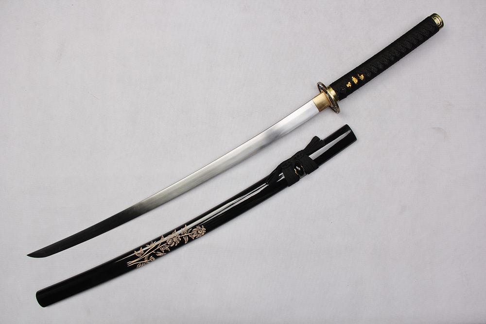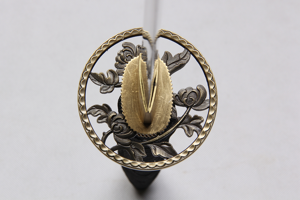 鞘材:實(shí)木黑亮光刻菊花 繞黑色帶