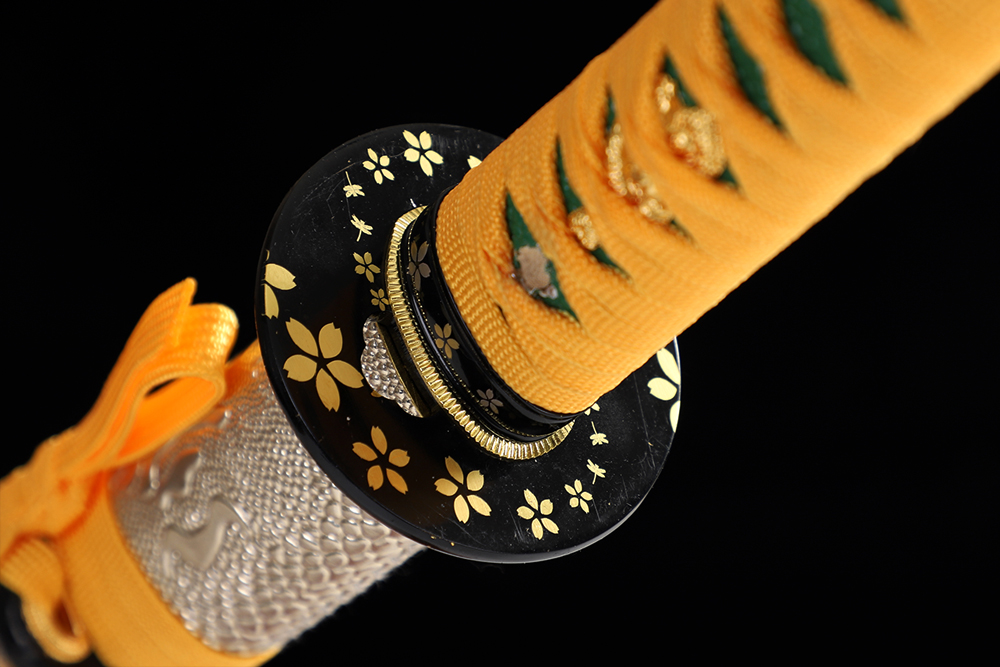 鞘材:實(shí)木包仿金色蟒蛇 繞桔黃帶