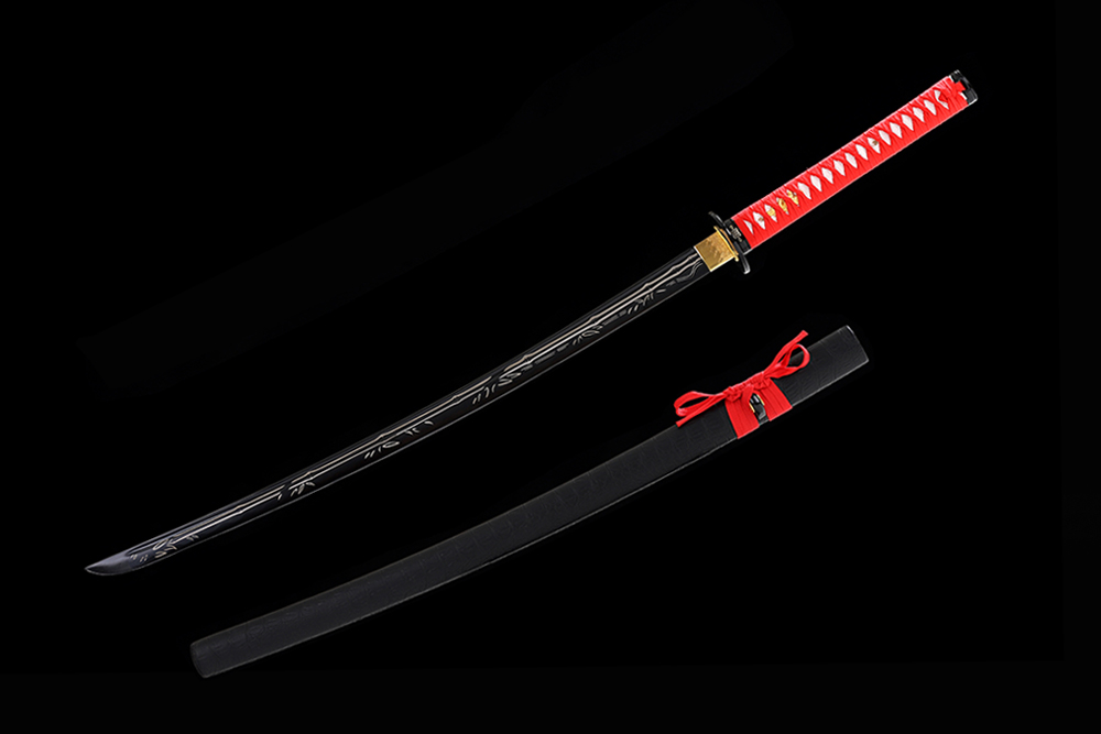 28寸手工刀全長:104cm 刃長:68cm 柄長:28cm刃材:1045鋼發(fā)黑全槽有切線有花口 激光刻義竹柄材:實木 繞大紅帶+仿魚皮鞘材:實木包仿黑色鱷魚 繞大紅帶配件:鋅合金包裝:雙瓦紙盒 帶黑布袋
