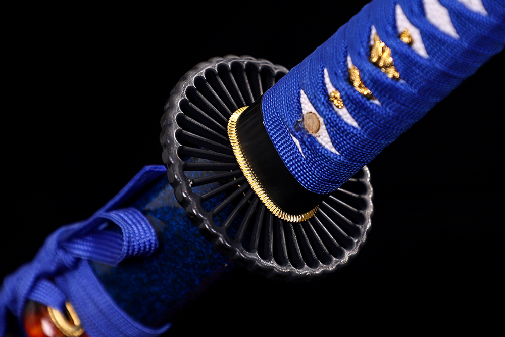 鞘材:實木深藍加金兩圈黑水晶鼻 繞寶藍帶