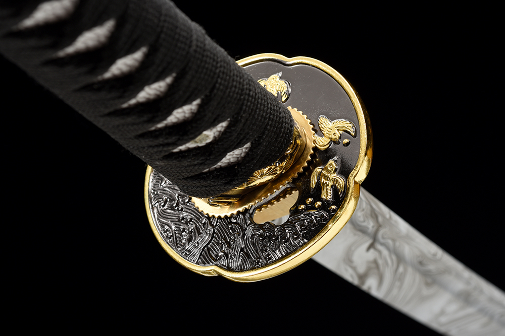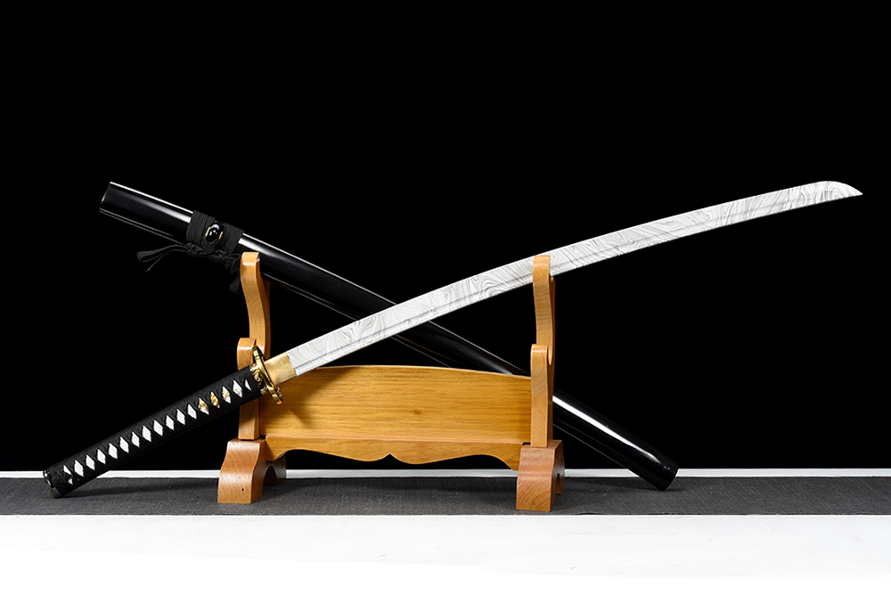 28寸手工刀全長:104cm 刃長:68cm 柄長:28cm刃材:塑料刀身 白色木紋油漆柄材:實木 繞黑色帶+仿魚皮鞘材:實木黑亮光漆 繞黑色帶配件:銅+鋅合金包裝:雙瓦紙盒 帶黑布袋